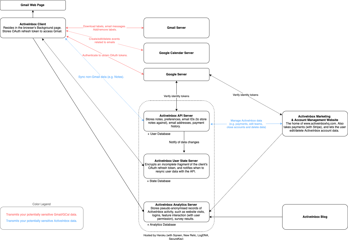 - The OAuth token, which grants the ActiveInbox client access to your Gmail data and is refreshed at least every hour, is stored on your local machine (see the Attack Vectors below).
